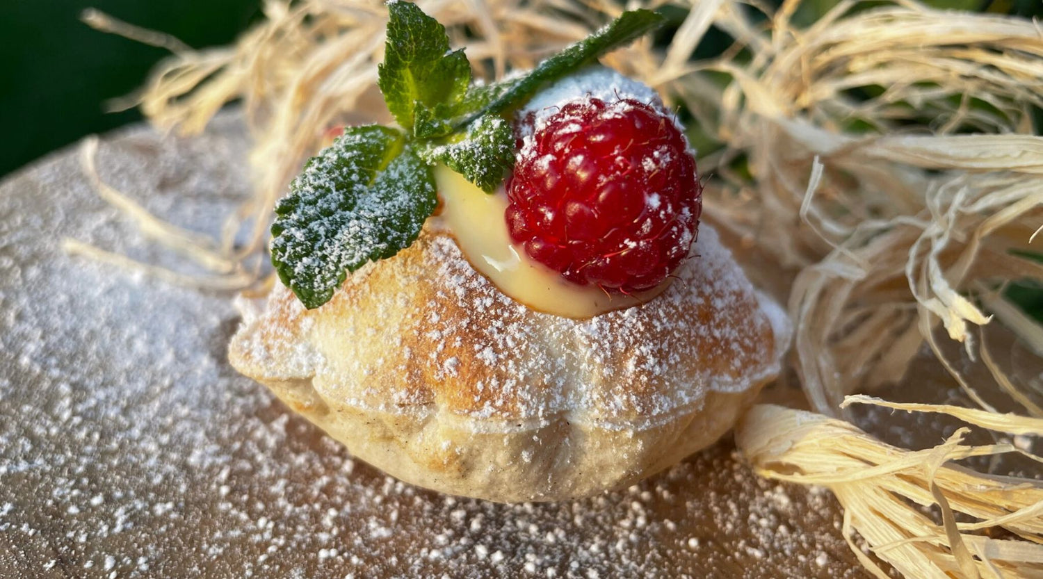 Marie´s süße Flammkuchen Variante mit Vanillecrème und frischen Beeren. Frisch zubereitet schmeckt der Flammkuchen am besten.